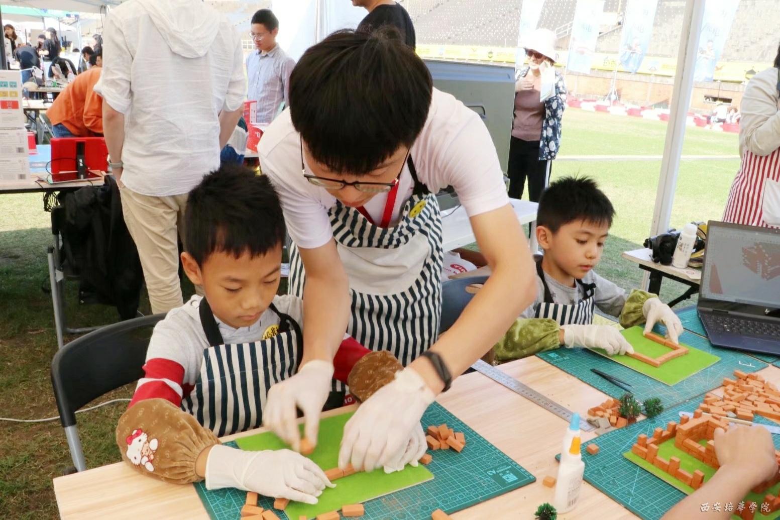 我校学子现场指导小观众设计并搭建仿真建筑作品