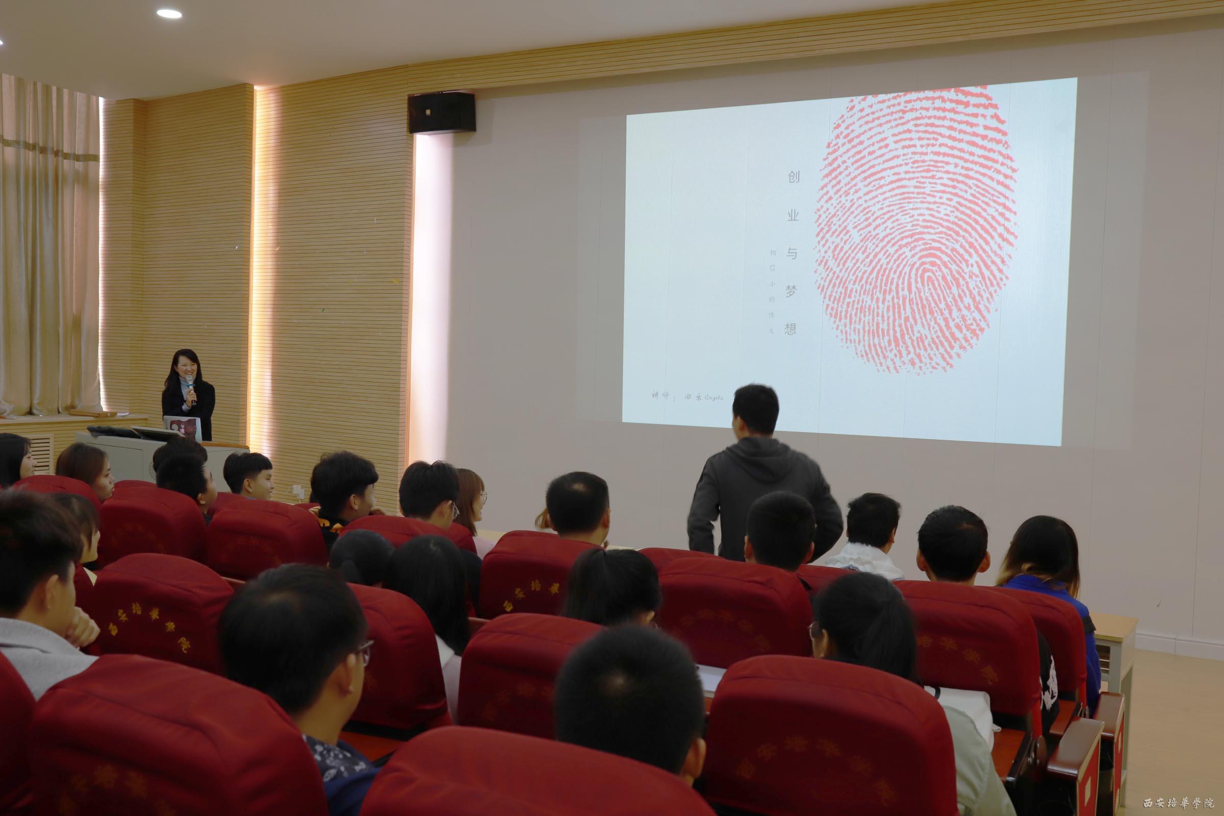 本次大讲堂邀请墨音生态体系联合创始人、丝绸之路国际总商会创始理事暨创始成员田乐老师主讲。田老师从创业背景、创业经历,创业政策和项目遴选五个方面结合自己的亲身经历,为同学们讲解了创业的艰辛与曲折。鼓励同学们勇于尝试,为自己的人生留下精彩的回忆。