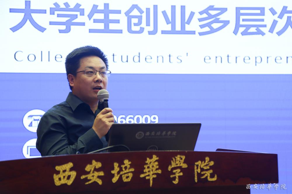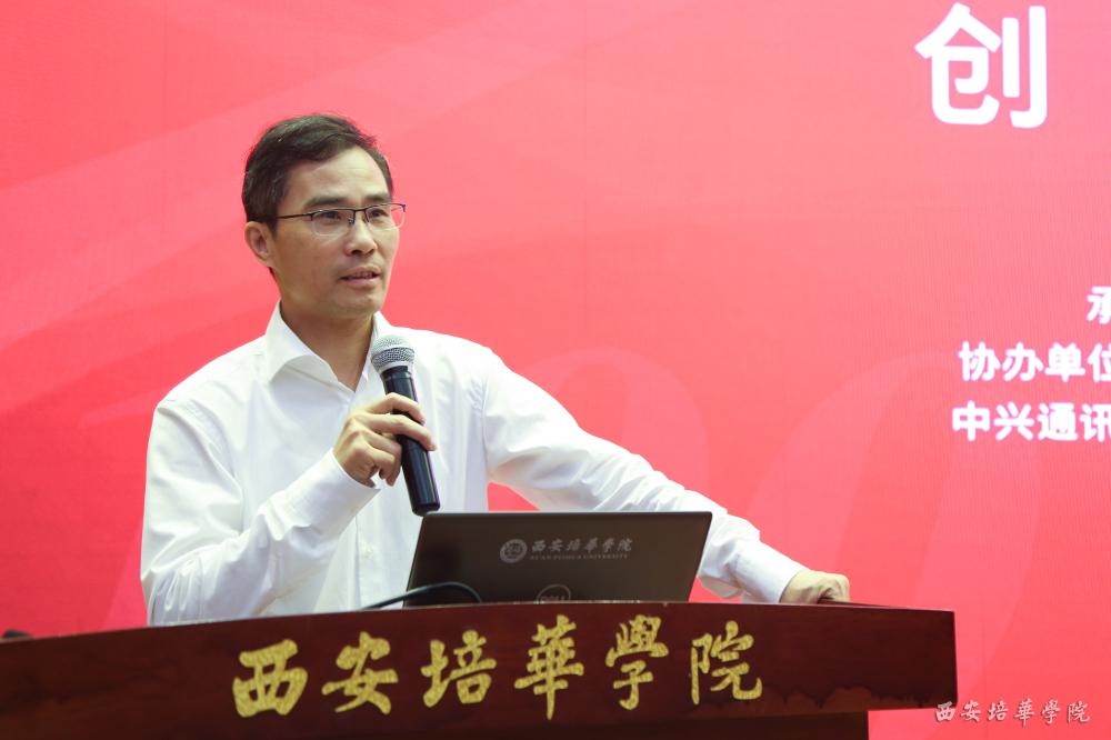 陕西省政协常委、省青联副主席、我校理事长姜波出席论坛并讲话,他表示,中华职教社走过100个年头,中国职业教育大放异彩,民办高校职业教育使命光荣、任务艰巨。在当今这个提倡创新创业、产教融合、校企合作的时代背景下,培华与深圳国泰安教育技术股份有限公司、中兴通讯股份有限公司等众多知名企业展开了合作,传承黄炎培先生职业教育思想,并赋予其新的活力。希望广大师生能通过论坛汲取营养,获得启发,碰撞出灵感的火花。