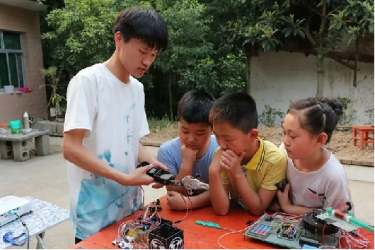 这么多新奇的、先进的、好玩的技术如何让家乡的孩子们也体验到呢。这是我一直想要做的事情。终于,在大一的暑假学校开展“三下乡”社会实践活动,我坚定地选择要将专业所学融入到社会实践当中,将我曾经没有听到过,没有见过的“新鲜玩意”带到家乡,让那些或许也曾幻想过天马行空的乡村留守儿童、中小学生能够感受到从未感受过的“科技盛宴”,一场场“流动科技展”种下了一颗颗科技的种子,让那一个个乡村留守儿童渴望知识的眼神闪闪发光。