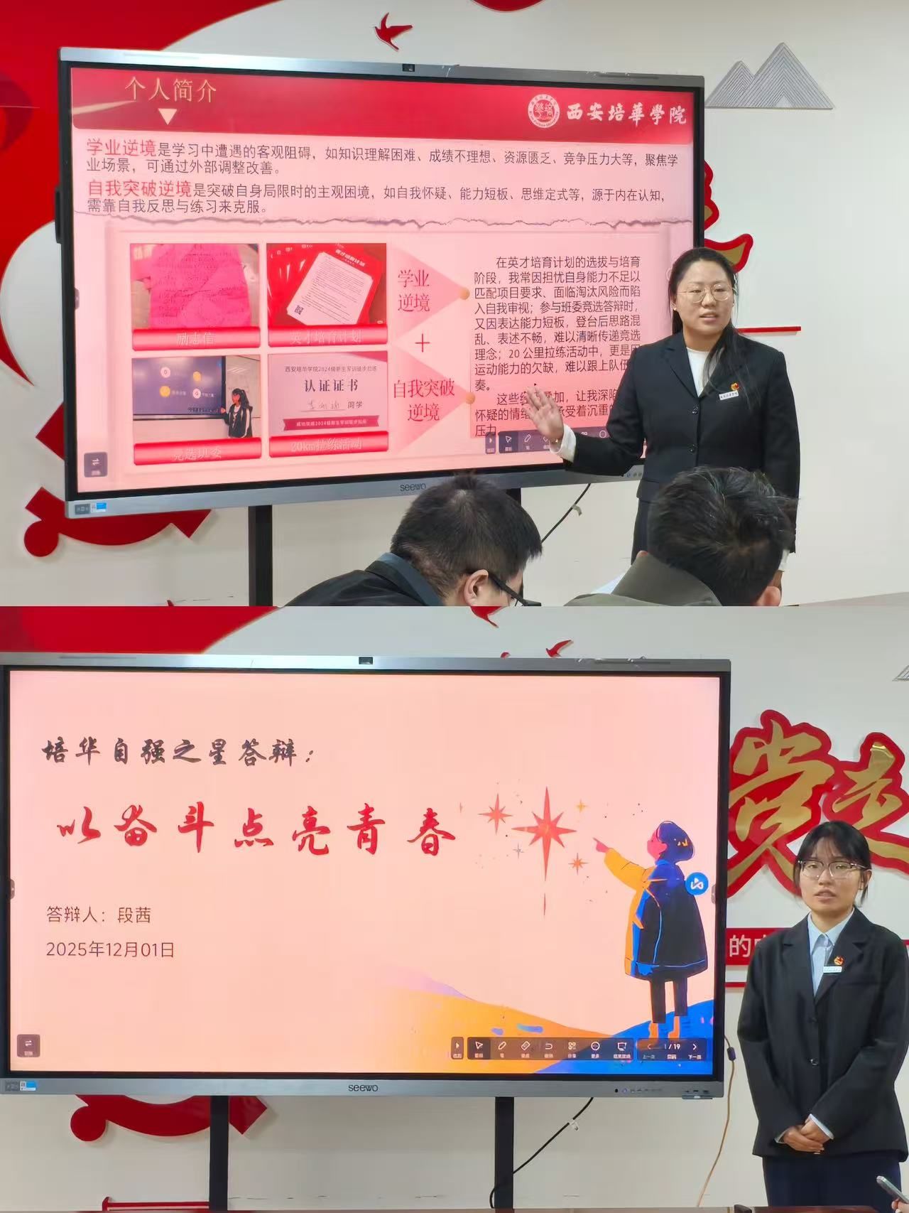 本次评审会严格把控答辩时间与现场纪律,流程规范、组织有序。参与答辩的学生在规定时间内,结合准备的PPT逐一进行展示,分别从学业成绩、科研创新、社会实践、志愿服务、综合素质及个人成长经历等方面展开陈述,全面而生动地展现了自身的突出表现与奋斗历程。各位候选人的答辩内容充实、条理清晰,充分体现了会金学子扎实的专业素养、昂扬的精神风貌与不懈的奋斗姿态。