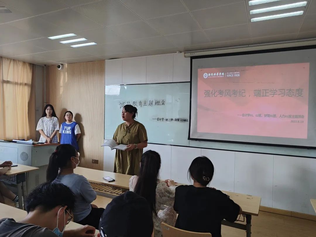 为营造诚信考试,杜绝作弊的教考环境,会计与金融学院6月15日—6月21日开展了以“诚信考试,杜绝作弊”为主题的班会。
