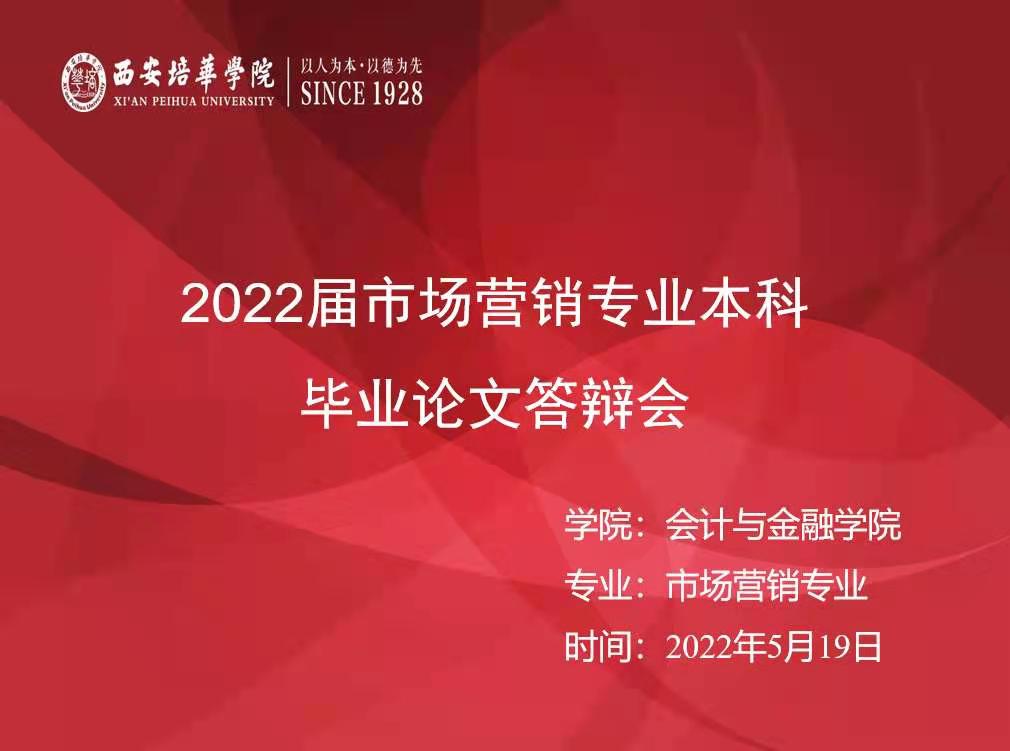 根据《西安培华学院本科毕业论文(设计)答辩工作实施细则(修订)》(培华院教发2020【71号】)文件要求,本着进一步优化毕业答辩组织程序,提高论文质量的要求,会计与金融学院市场营销专业在2022年5月19日——20日举办了2022届本科毕业生论文答辩会。本次答辩设答辩组长3人,答辩秘书2名,参与中高职称教师共计7人,学生共计57人,分为三个组别,两个线下,一个线上组别进行答辩。