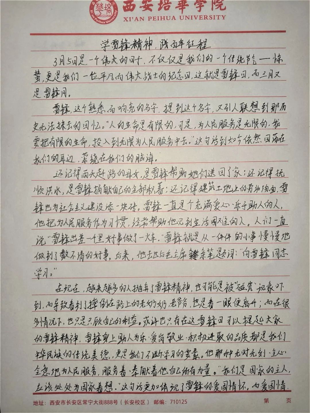西安培华学院会计与金融学院学生会为此举办了“践雷锋精神,行百年共青”作品展活动,主要作品形式有征文、书法、手抄报。