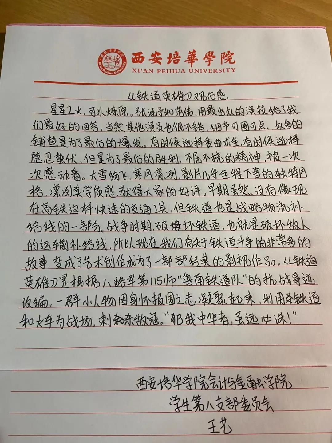 学生各支部成员都被影片中的老辈英雄为国家为民族而战的大无畏精神而感到深深折服,在观影结束后写下了自己的观影心得。