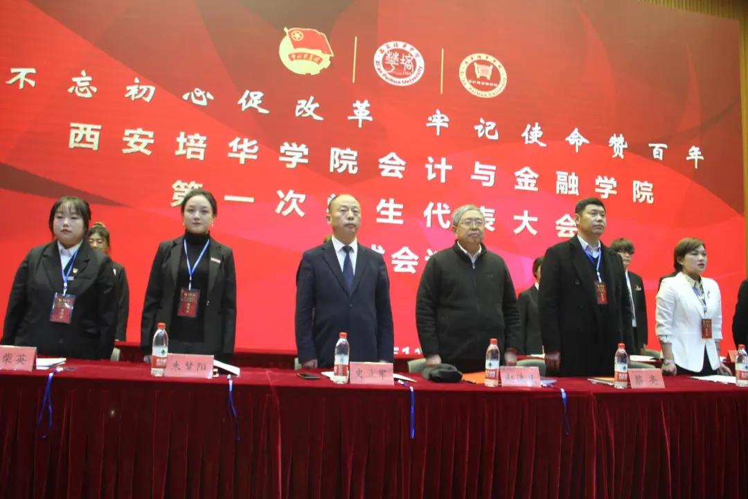 西安培华学院会计与金融学院第一次学生代表大会正式会议于11月10日18:30举行。莅临本次会议的领导嘉宾有西安培华学院会计与金融学院院长赵选民,西安培华学院党委学工部部长、校团委书记蔡亮,会计与金融学院党委书记兼行政副院长史立军,西安培华学院校团委副书记、校学生会秘书长杨媛,西安培华学院会计与金融学院团委书记张羽晗,西安培华学院会计与金融学院团委副书记、学生会指导老师朱梦阳,西安培华学院学生会主席团成员李姝睿,西安培华学院会计与金融学院第三届学生会执行主席张柴英以及校团委老师代表,各二级学院团委书记、团委副书记代表,各二级学院学生代表。