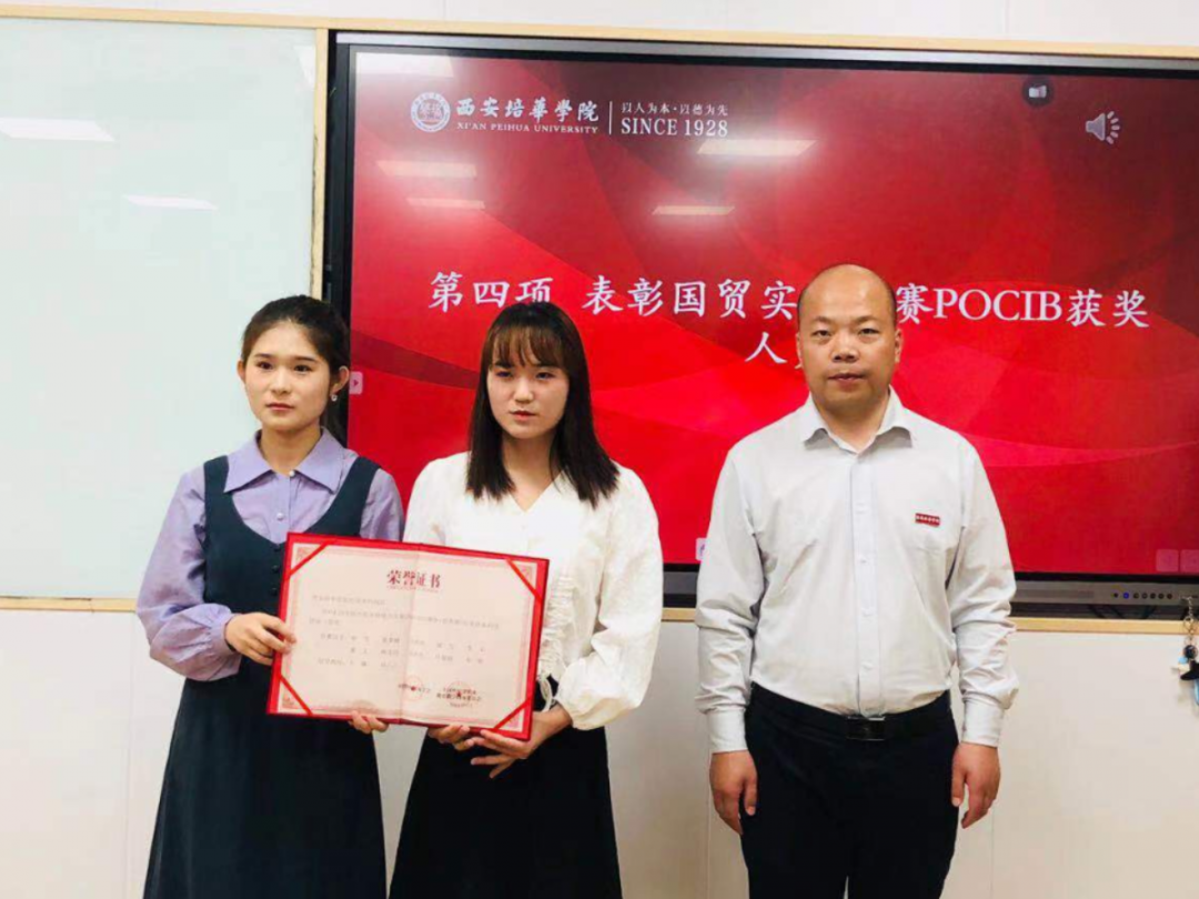 由会计与金融学院杨仕鹏院长、后勤服务中心张静远主任、环保干事全老师分别为获奖学生进行颁奖,以资鼓励。本次被表彰的赛事及学生包括:上半年获得全国高校市场营销大赛策划案三等奖的王博等同学;获得全国高校市场营销大赛策划案一等奖的安杨玲等同学;获得全国高校市场营销大赛全国复赛三等奖的王佳超等同学以及获得POCIB全国外贸从业能力大赛2020-2021赛季(春季赛)中荣获本科组团体三等奖的团队等。