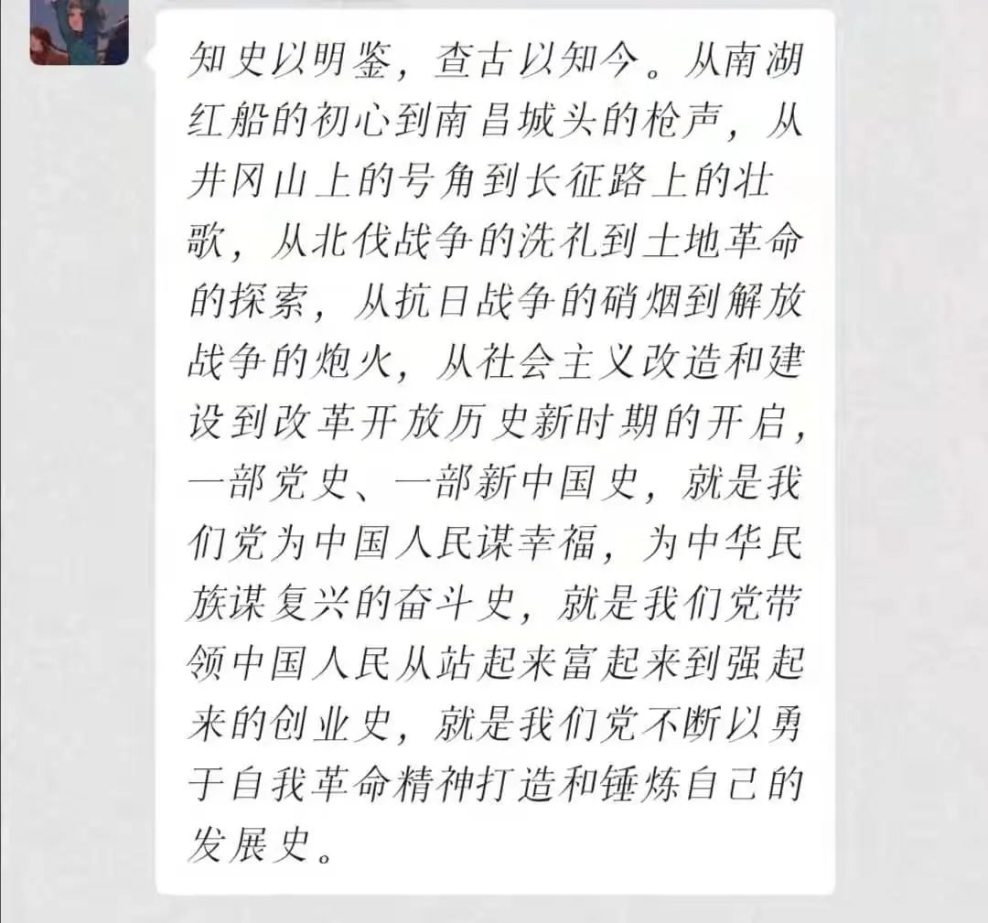 今年是中国共产党成立100周年,党中央决定在全党开展党史学习教育,习近平总书记也在党史学习教育动员大会上强调,全党同志要做到学史明理、学史增信、学史崇德、学史力行,学党史、悟思想、办实事、开新局,以昂扬姿态奋力开启全面建设社会主义现代化国家新征程,以优异成绩迎接建党一百周年,党史是门“必修课”,不仅要修,而且要修好,必须让学党史蔚然成风。学习党史应当成为每一名党员的自觉行动。揆诸现实,个别党员学党史不主动、不求甚解,往往是上级要求学就学,或者学习浅尝辄止,既不知其然,更不知其所以然,云里雾里。善于学习,就是普于进步。为此同学们积极参与并进行了线上学习。