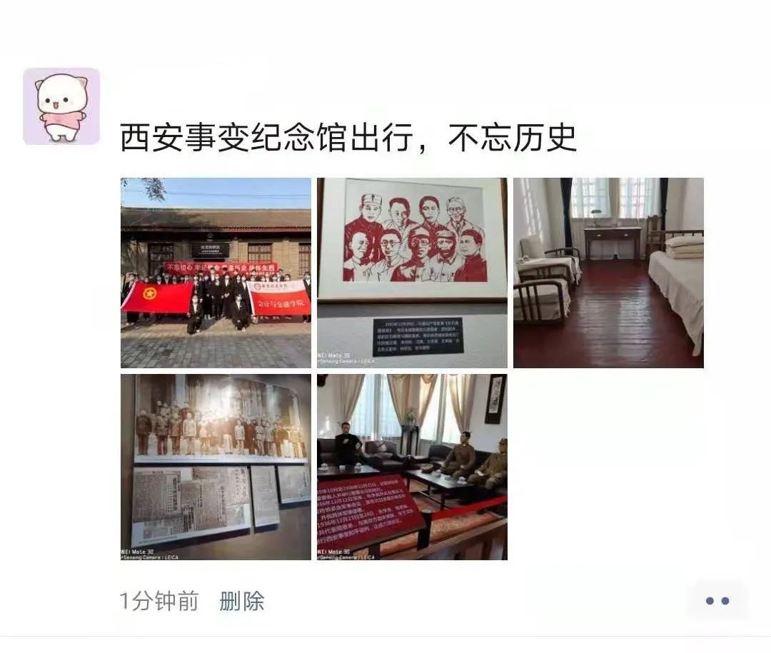 在纪念馆讲解员的讲解下,我们了解到西安事变旧址作为西安事变这一历史事件发生的特定空间,它见证了事变从酝酿、爆发到和平解决的全部过程,感受了事变对中国历史的影响,也感受了老一辈革命家敢于斗争、共赴国难的历史使命和报国之志。