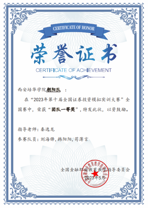 近日,由全国金融职业教育教学指导委员会组织的2023年第十届全国证券投资模拟实训大赛传来佳报。本次大赛共有本科组296所院校的13711支队伍参赛,职教组226所院校的6500支队伍参赛。大赛以线上投资模拟(股票、基金、债券)方式进行,各参赛队伍线上模拟投资,按照总账户收益率排名。