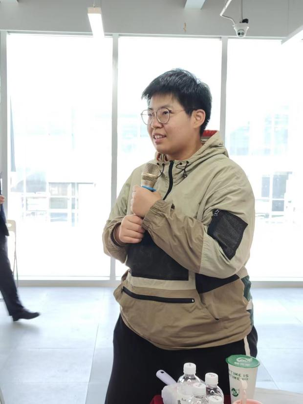 沙龙第三项,学业导师发言,张哲老师作为学业导师代表发言,通过从不同角度、不同维度、不同时间几个方面对学生与老师之间的关系,以及学风建设发展过程,进行了讲解,最后他表示“不是每一个学生都能成才,但我们会用尽全力使每一位学生都成人”。