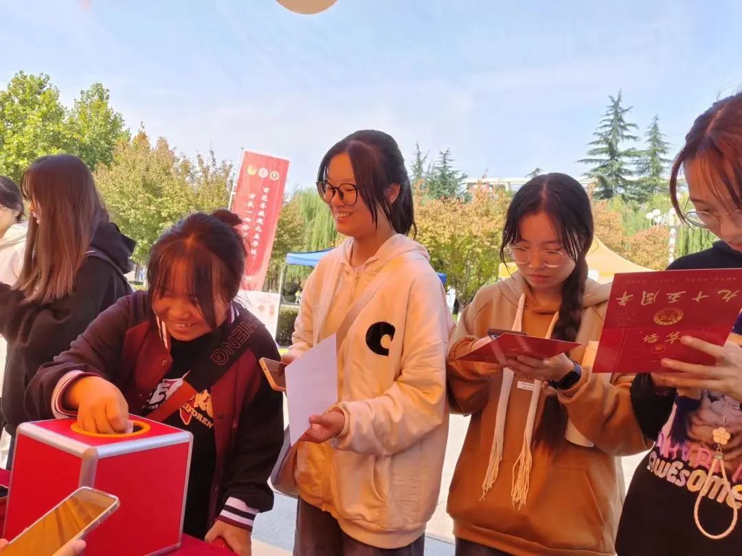 同学们在便利贴上留下对学校建校九十五周年的视福语并粘贴在留言板上,视为通关成功,获得专属徽章,即可前往下一关卡。