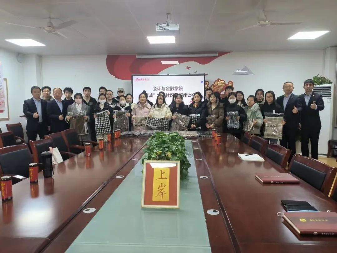 寒冬送暖,“研”途相伴。2024年国家硕士研究生招生考试开考在即,为进一步发挥一站式学生社区育人功能,帮助考研学子缓解备考压力,坚定考研信心、积极冲刺迎考,2023年12月11日,会计与金融学院“至诚”学生社区在博远楼2115会议室召开了考研慰问座谈会。学院党委书记兼行政副院长史立军、党委副书记刘斌、学生干事王迪、学生干事张峰涛、辅导员赵娅楠、赵琦及考研学生代表参加了此次座谈会。
