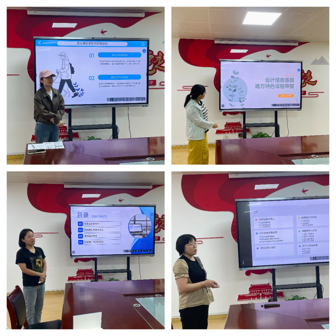 会议伊始,由《大数据与财务分析》《会计信息系统》《初级会计实务》《金融学》四门地方特色课程负责人依次进行课程立项汇报。