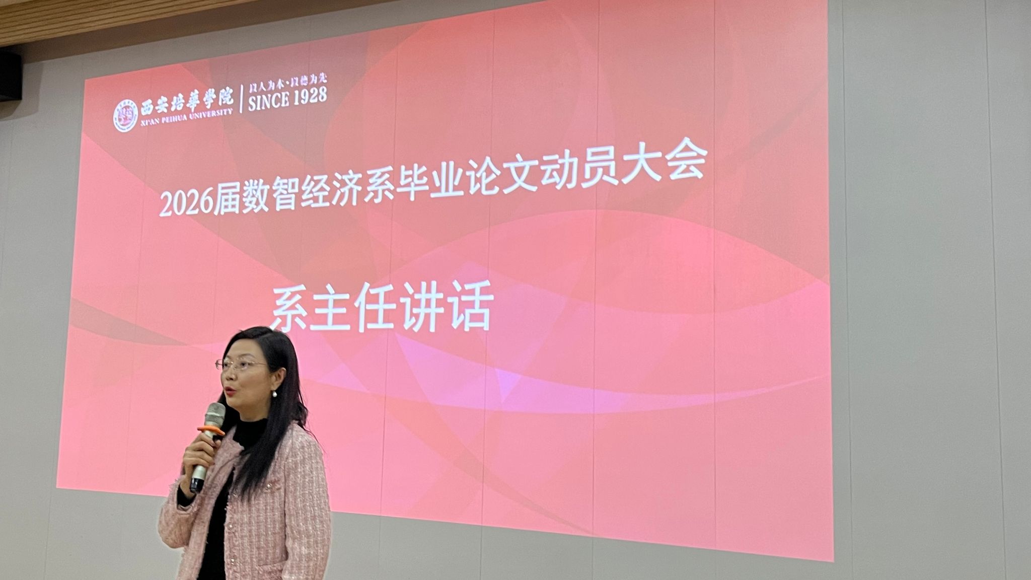 首先,孟院长对2026届毕业生进行毕业论文的动员。她强调,毕业论文是检验学生四年学习成果、综合运用专业知识解决实际问题能力以及培养初步科研创新能力的核心环节。她要求全体同学要充分认识到此项工作的严肃性与重要性,将其视为大学学习生涯的“收官之战”和走向社会或深造的“前哨站”,以高度的责任感和饱满的热情投入其中。