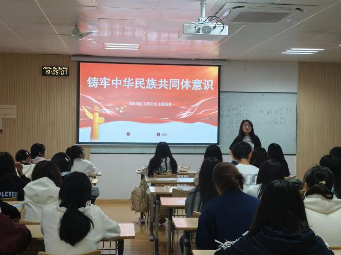 班会上,辅导员通过有关增进中华民族共同体意识教育的纪录片,让同学们直观地感受各民族的文化魅力和团结奋斗的精神。同时,向同学们介绍了中华民族共同体意识的内涵、重要意义、历史发展等内容,使学生认识到各民族长期的历史发展过程,引导学生树立正确的民族观。