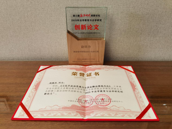近日,第三届法治时代创新论坛在北京顺利闭幕。西安培华学院金融文化研究院院长赵晓舟教授,凭借其在金融文化领域的深入研究,撰写的论文《习近平法治思想与中国金融治理现代化》在论坛“创新征文”评选中脱颖而出,荣获奖项。