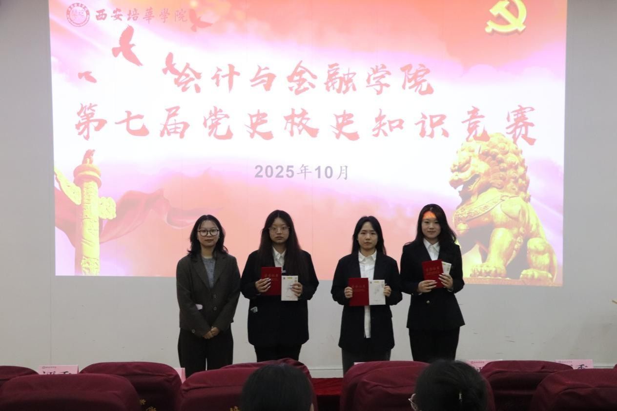 决赛现场氛围热烈。竞赛题型丰富,包含单选、多选、判断三类基础题型,还设置了紧张刺激的抢答环节。内容不仅包括党史中的重大事件、重要理论、伟大精神,还融入了西安培华学院的建校历程、办学特色、杰出校友事迹等校史核心内容。