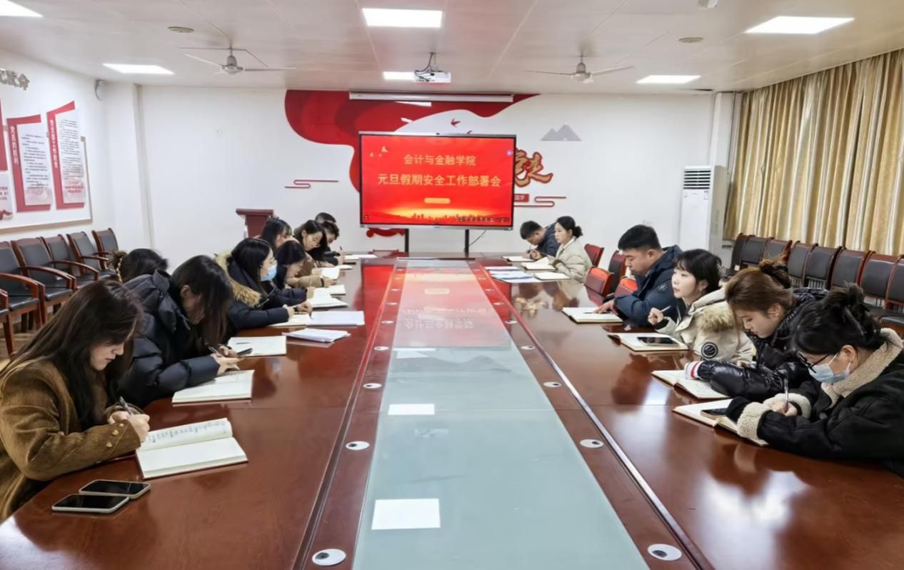 此次会议的召开,进一步明确了元旦假期安全工作的重点任务与行动方向,有效强化了全体辅导员的安全责任意识与风险防控意识,为扎实做好假期期间安全稳定工作奠定了坚实基础。下一步,会计与金融学院将以此次会议为契机,持续深化安全隐患排查整治,常态化推进学生安全教育管理,全力保障全院学生生命财产安全与校园和谐稳定。