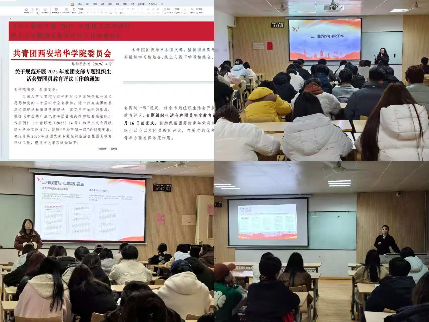 为深入学习贯彻习近平新时代中国特色社会主义思想和党的二十届四中全会精神,进一步夯实团的基层组织建设和团员队伍建设,落实从严治团的要求,共青团西安培华学院会计与金融学院委员会于2026年3月10日在J202召开团员教育评议工作指导会。