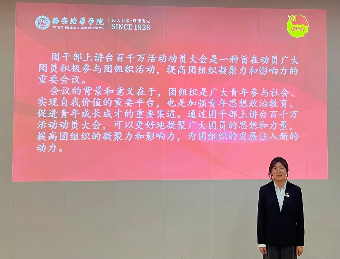 团干部上讲台百千万活动动员大会是一种旨在动员广大团员积极参与团组织活动,提高团组织凝聚力和影响力的重要会议。会议的背景和意义在于,团组织是广大青年参与社会、实现自我价值的重要平台,也是加强青年思想政治教育、促进青年成长成才的重要渠道。通过团干部上讲台百千万活动动员大会,可以更好地凝聚广大团员的思想和力量,提高团组织的凝聚力和影响力,为团组织的发展注入新的动力。