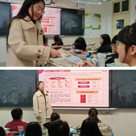 在宣讲环节,权明悦结合自身经历,从专业学习、社会实践等多个角度,全面介绍了在西安培华学院的成长与收获。同时,权明悦详细讲解了西安培华学院的优势学科、特色专业以及强大的师资力量,让同学们对西安培华学院有了更深入的了解,并且给同学们分享了一些高考方面的问题以及大学生活的情况。