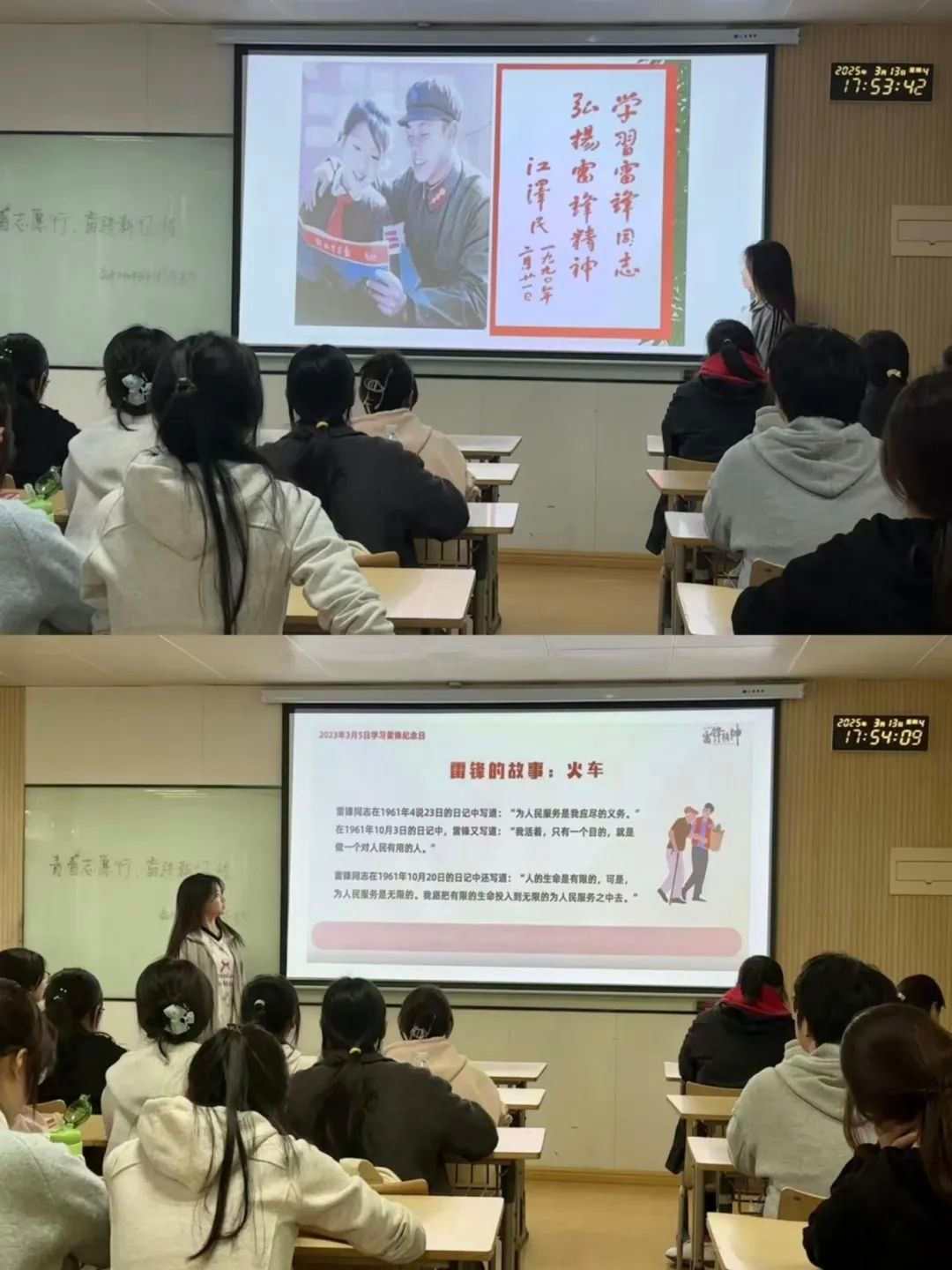 各团支部以生动形式开展雷锋精神学习主题团课,通过观看纪录片、情景模拟志愿服务场景、分享身边好人好事,让互助思想如春风化雨般在校园贯彻传扬。无论是用镜头捕捉瞬间、举办主题演讲,还是开展"学雷锋"志愿服务实践,都是为了让雷锋精神如种子般扎根心间,让助人成为下意识的温暖行动。这些宣传和活动虽有时限,但其播撒的善意种子,却在岁月里持续绽放芬芳。