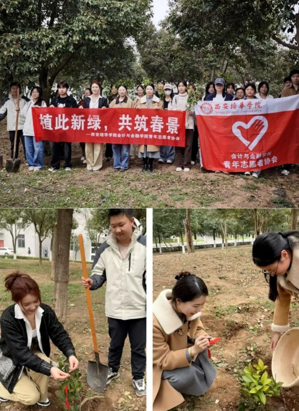 2025年 3月21日,会计与金融学院青年志愿者协会组织同学们积极参与植树节活动,实现了青春与绿意的融合,践行了社会责任。活动为生态增添生机,在同学们心中种下绿色希望,使其增强了环保和社会责任感。
