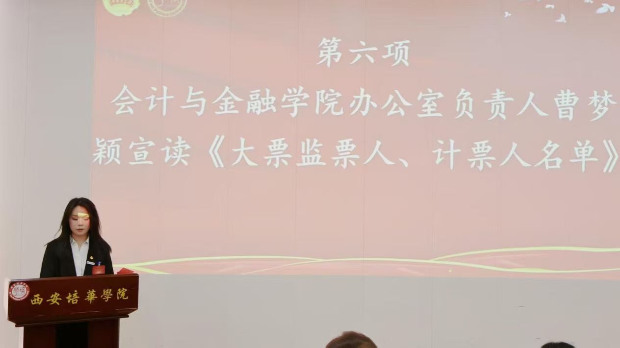 第一项:宣布西安培华学院会计与金融学院第四次学生代表大会常任代表委员会委员候选人名单、学生会委员会主席团成员候选人名单