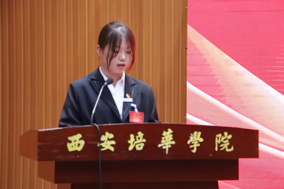 第三项:宣读《西安培华学院会计与金融学院第四次学生代表大会提案工作报告》