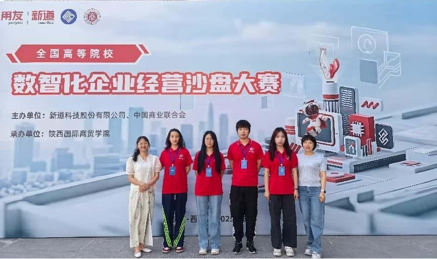 在数字化转型浪潮席卷全球的今天,一场旨在挖掘与培养新一代数智化人才的全国性赛事—“第二十一届陕西省高等院校数智化企业经营沙盘大赛”于2025年5月23-25日在陕西国际商贸学院举行,大赛由中国商业联合会、新道科技股份有限公司主办、陕西国际商贸学院承办。来自陕西省区24所本科院校、共68支队伍、近400名参赛选手与指导老师参加本次大赛。经过校赛选拔我校最终派出两支参赛队伍,一支是周嫚、郑倩云指导的“畅通无阻”1队;另一支是由夏小荣、张亚娜老师指导的“疯狂星期四”2队。