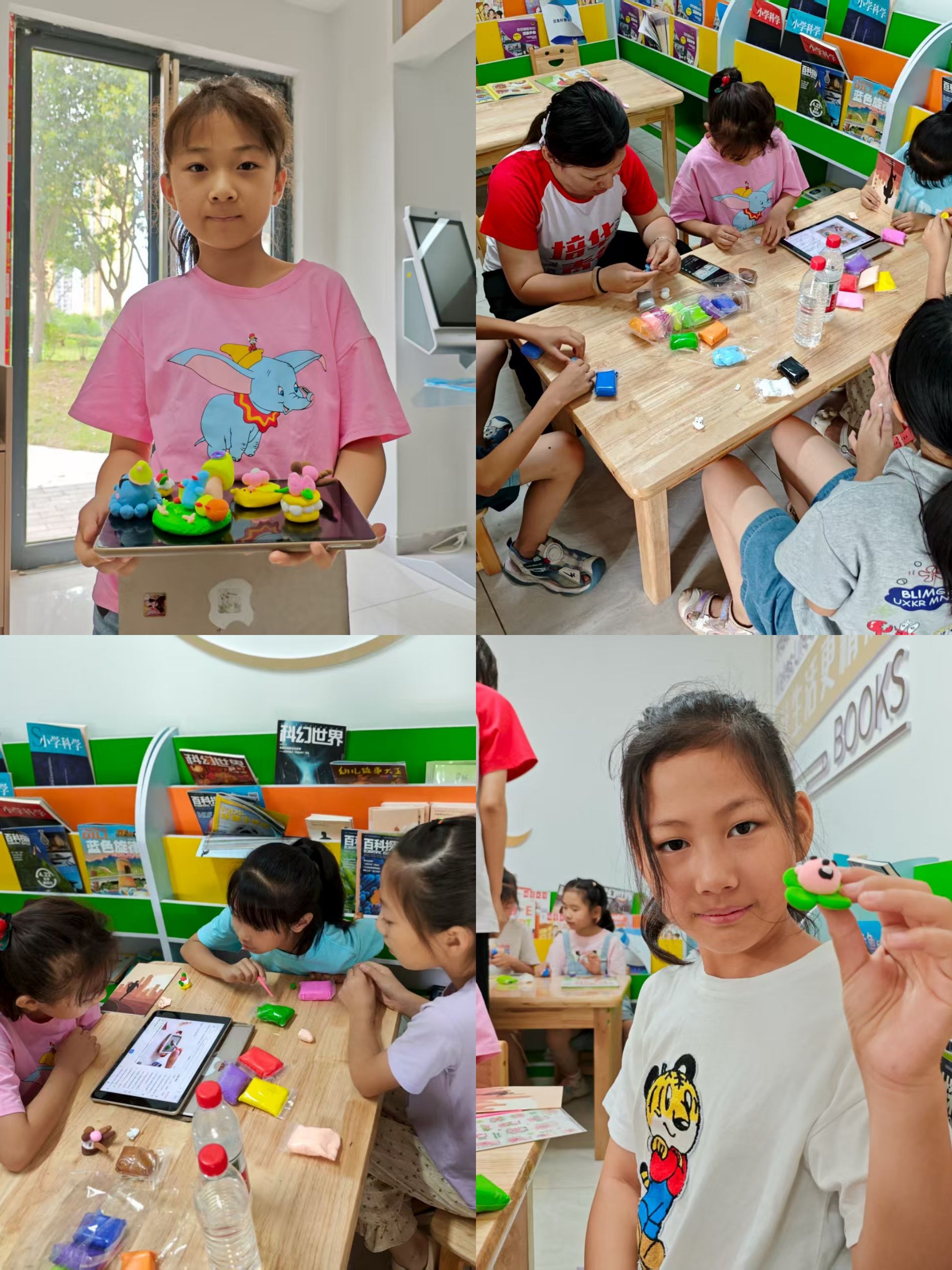色彩斑斓的粘土,是打开孩子们创意大门的钥匙。在手工环节,志愿团成员与孩子们一同,开启奇妙的艺术探索之旅。揉、捏、搓、粘,简单的动作,在孩子们手中幻化为灵动的造型—— 或是憨态可掬的小动物,或是梦幻的童话场景,每一件粘土作品,都饱含着童真与想象,成为独属于孩子们的创意宝藏,让艺术的魅力在指尖绽放,点亮他们对美的感知。