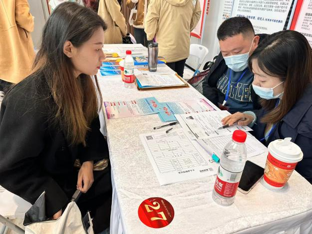 招聘会现场设立通过直播带岗、政策咨询、就业指导、简历诊断等服务,招聘企业和求职者提供更好的平台。在抵达目的地进入到招聘会现场后,同学们就积极寻找自己感兴趣或适合的企业进行现场咨询并投递了个人简历,经会后统计,累计投递简历230余份,初步达成意向20余人次。