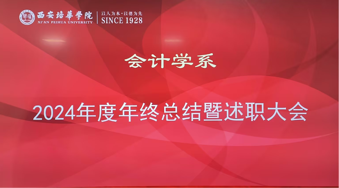 西安培华学院会计与金融学院会计学系牢记校训“校誉至上、质量第一,自强不息、开拓前进”,回顾2024年度,围绕审核评估整改中期、会计学国一流专项建设、会计学ACBSP专业认证、申硕等主要工作,以评促建为第一,开拓前进建一流,2024年12月11日下午3点,会计学系2024年度述职报告会在博远楼2201智慧教室召开,会议由会计学系主任王小毅副教授主持,会计学系全体教师参会。