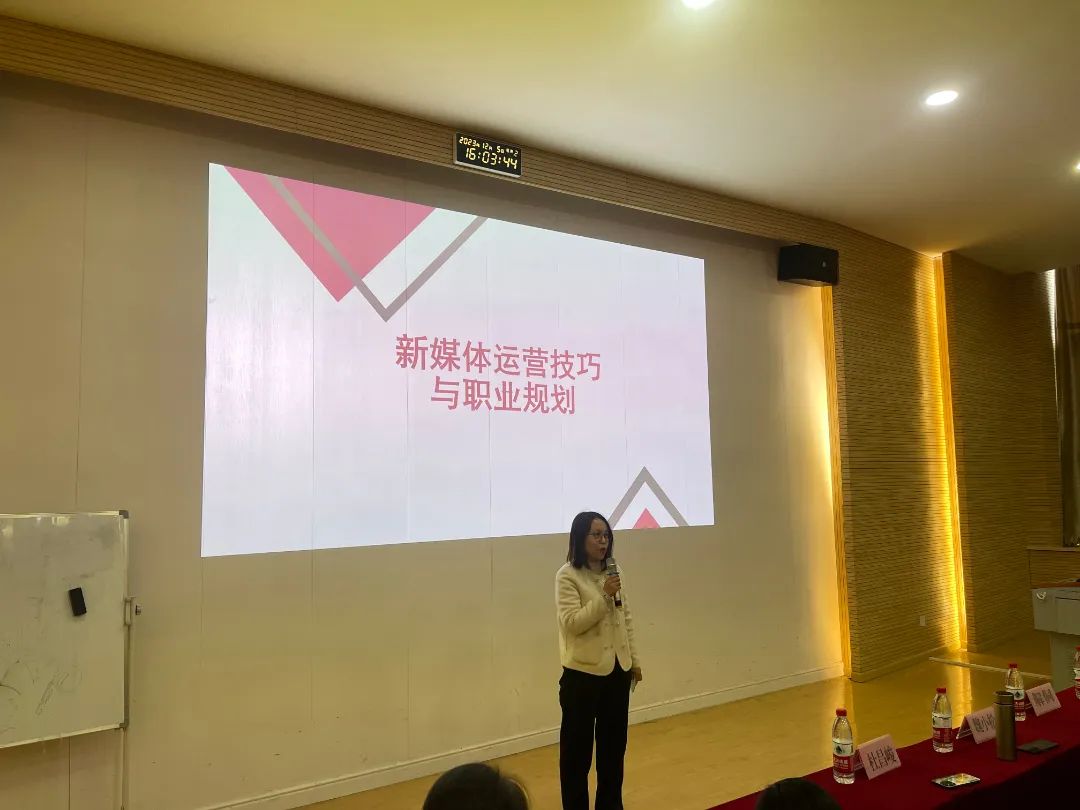 为促进市场营销、电子商务专业应用型人才培养,西安培华学院会计与金融学院数智营销系于2023年12月5日下午4点在博远楼J201成功举办了以"新媒体运营技巧及职业规划--企业家进课堂"为主题的讲座,主讲人为陕西念雷知一电子商务有限公司商务总监——王唯霖。念雷知一总经理杜昌峻带领公司相关工作人员共同助力此次讲座,本次讲座不仅深入探讨电商新兴业态的发展趋势、岗位需求和直播带货实时数据,而且聚焦电商直播领域,为在校师生提供了更为全面深刻的行业洞察。此次讲座由会计与金融学院丁阳副院长、数智营销系李亚子主任以及全体教师与电子商务、市场营销学生共同参与一起探究电商新趋势。