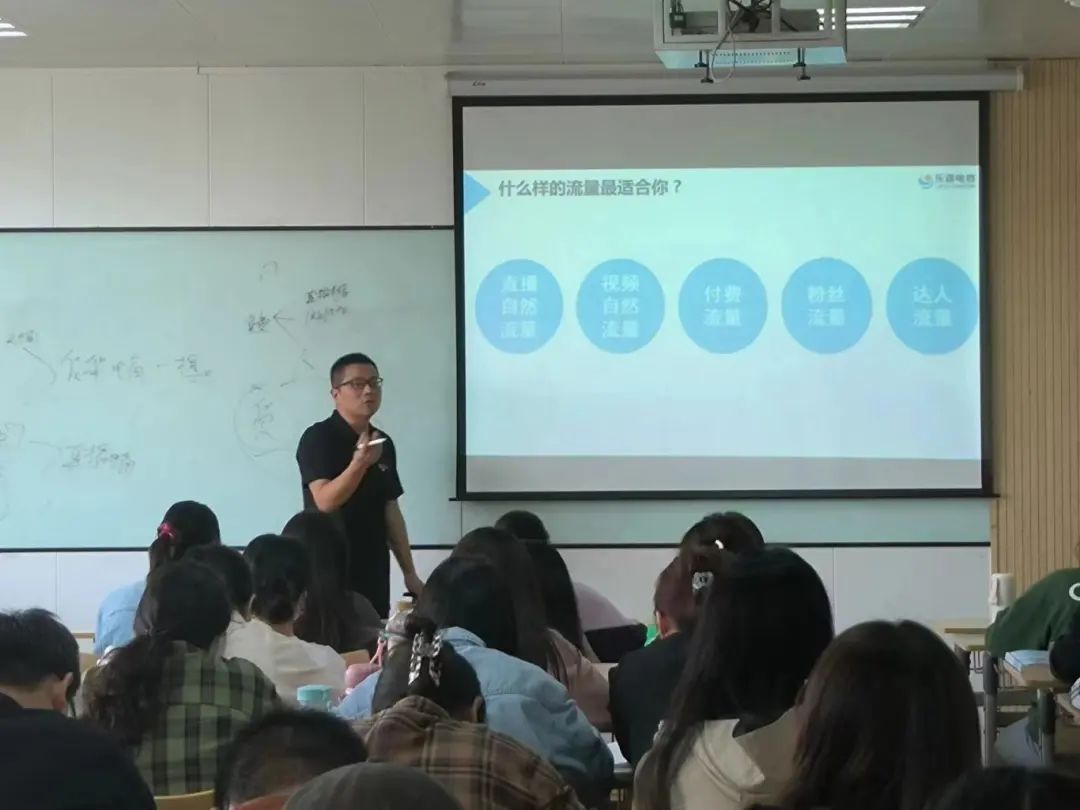 课堂上,朱总监与学生们频繁互动,以其丰富的电商运营经验,深入浅出地讲解了抖音运营的核心方法,详细剖析了抖音电商五大运营类型,并首次公开分享了他的“三频共振方法论”——如何通过短视频引爆直播间流量。讲座内容既有理论深度,又充满实战经验,让在场的学生们耳目一新。在运营技巧环节,同学们进入抖音直播间亲身体验。这种理论与实践相结合的方式,不仅让学生们对网络营销有了更深刻的理解,也让相关的方法和技巧真正入脑入心。课程结束后,朱总监耐心细致地回答同学们的问题,不仅解答了学生们的疑惑,更为他们的未来职业规划提供了宝贵的建议。