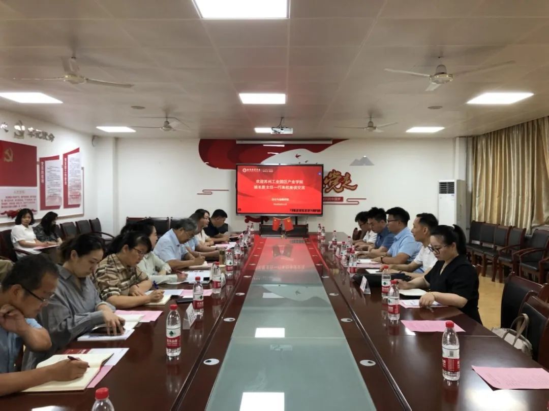 8月21日,苏州工业园区产业学院姚长胜主任、办公室汪佳奇主任、特聘企业导师顾明俊、助理张雨停和专员顾娟一行五人来我院交流,洽谈政校合作事宜。学校招生与就业指导中心王琳副主任、会计与金融学院赵选民院长、刘斌副院长、孟君副院长和丁阳副院长及数智营销系全体教师参加会议,会议由刘斌副院长主持。