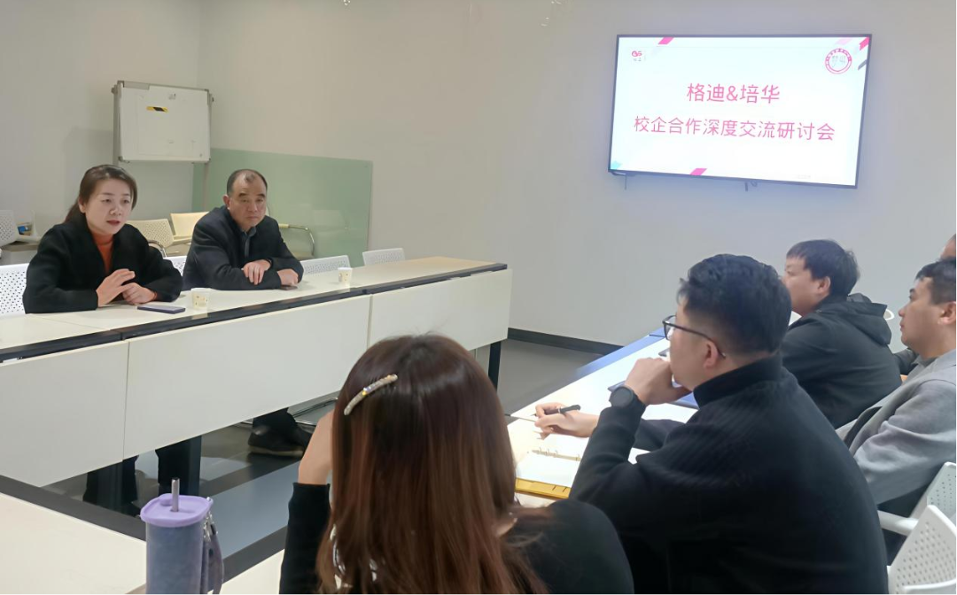 随后双方进行了校企深度合作交流会,丁阳副院长详细介绍了会计与金融学院校企合作的现状,并强调了深度合作向低年级渗透的重要性。提出通过将专业实习前置,可以让学生更早地接触实践,从而提高学习效果,并分享了格迪真实项目如何在全年级开展,以及如何实现“真学真做”的教学理念。