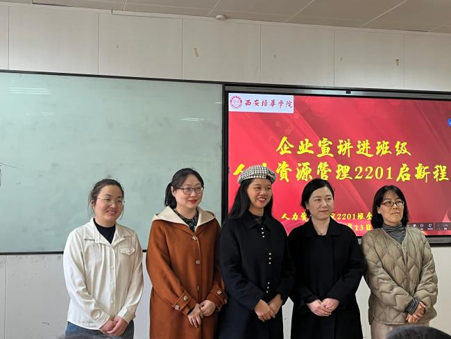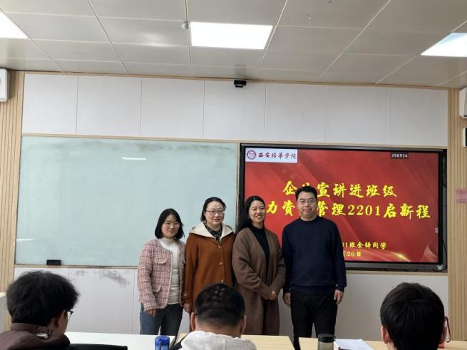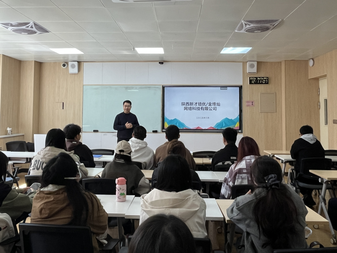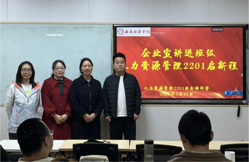2025年3月,陕西世纪优途文化科技有限公司、陕西金烽灿网络科技有限公司、陕西雨竹秋莲建筑有限公司来到人力资源管理2201班举行了企业宣讲会。宣讲会上,各企业详细介绍了公司的业务范畴、企业文化以及提供的实习岗位等内容。本次宣讲会聚焦于让同学们深度洞悉职场需求,致力于在职业规划的道路上,为同学们提供切实有效的指引 ,帮助大家在人力资源领域找到方向,开启理想职业之旅。