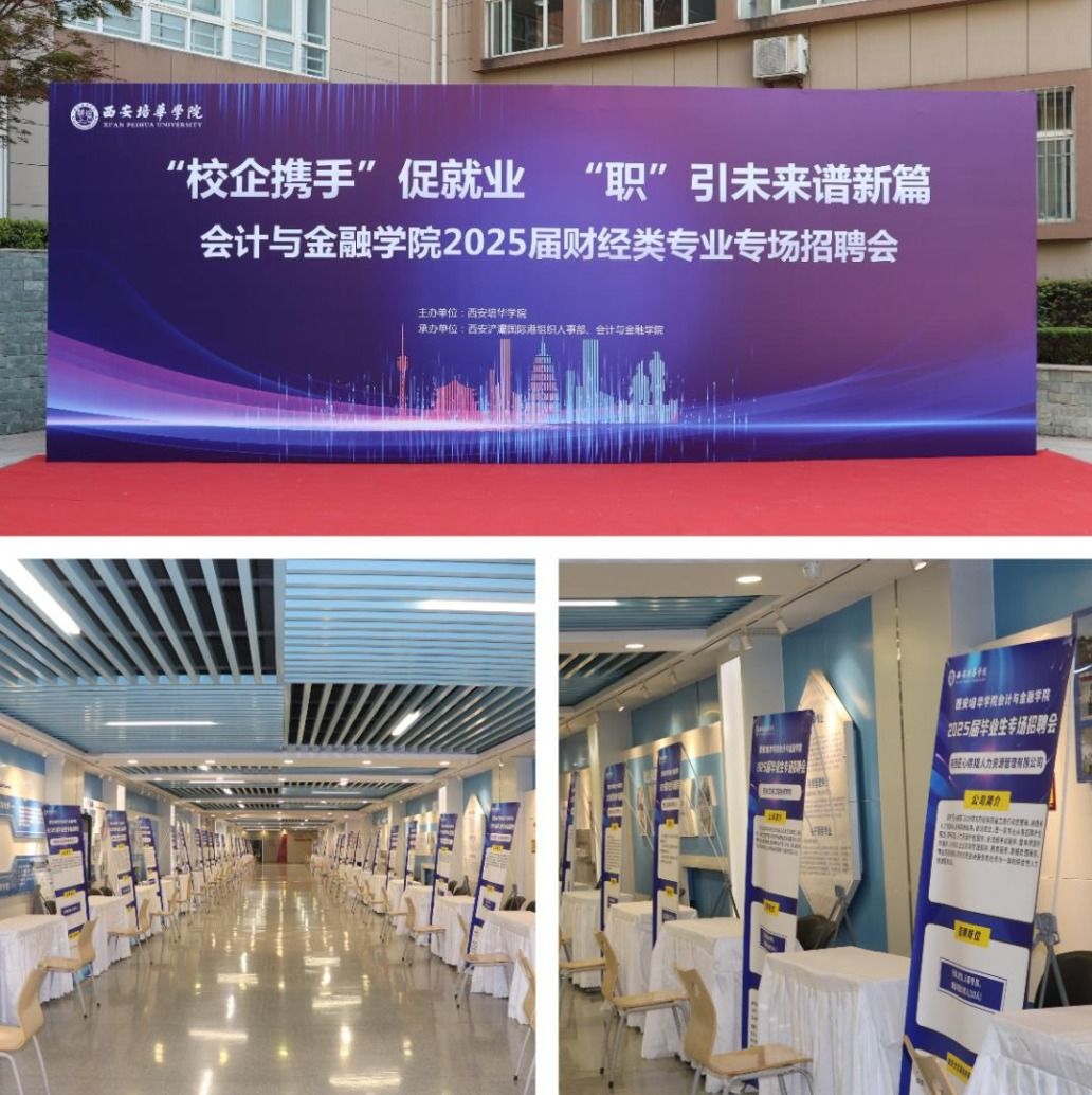 为深入贯彻落实党中央、国务院关于高校毕业生就业工作的决策部署,搭建用人单位与毕业生双向选择平台,同时在学校领导和招生与就业指导中心的大力支持下,会计与金融学院于2025年4月23日上午,在西安培华学院博远楼一楼西厅内召开会计与金融学院 2025 届财经类专业专场招聘会。本次招聘会以 “校企携手” 促就业,“职” 引未来谱新篇为主题,吸引了众多知名企业参与,为毕业生提供了丰富的就业机会,开启了校企合作育人的新篇章。