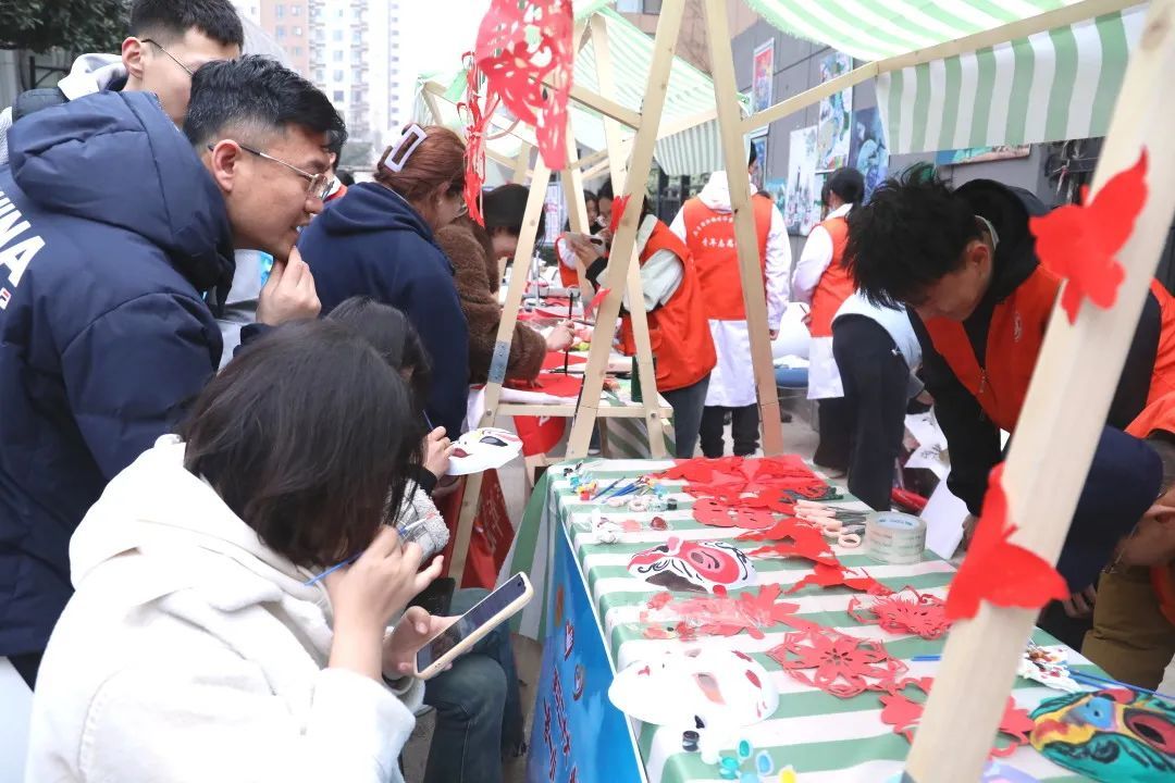 为传承非物质文化遗产,弘扬民族传统艺术,社团管理部的同学们带着剪纸、脸谱等传统“非遗”项目走进社区,让广大居民零距离感受“非遗”文化的无穷魅力。