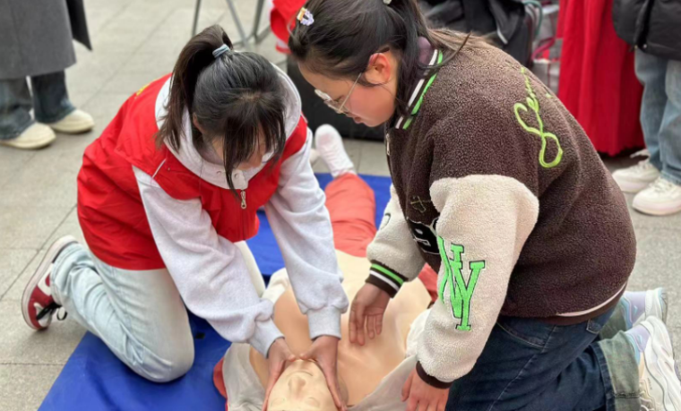 活动中,红十字会的同学们通过实例讲解、示范操作、现场演练等形式,用模拟人形象地演示了心肺复苏、气道异物梗阻等各类急救技能,告知社区居民们遇到突发情况该如何作出反应,抓住急救“黄金4分钟”。