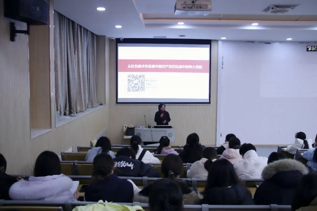 以艺术为窗,观照历史;以经典为证,感悟担当。为深入推进党史学习教育走深走实,引导青年学子从抗战历史中汲取奋进力量,第十九期“青马工程”暨学生骨干领导力提升训练营的第十五讲——从红色美术作品看中国共产党在抗战中的伟大贡献于12月15日在育英楼3507开展。本次培训特邀马克思主义学院银龄讲师团沈宝莲老师,带领学生骨干赏析一幅幅红色美术作品,重温14年抗战岁月。