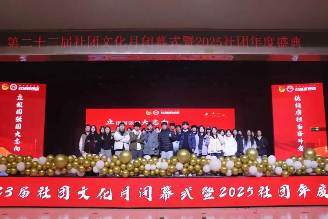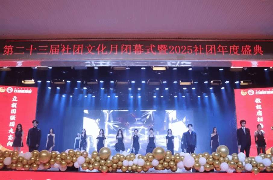 2025年12月29日晚,大学生活动中心内流光溢彩、座无虚席,第二十三届社团文化月闭幕式暨2025社团年度盛典在此隆重举行。本次晚会以“立报国强国大志向,做挺膺担当奋斗者”为主题,通过三个篇章、二十个精彩节目,全面展现了我校学生社团的活力与青春风采,为本届社团文化月画上圆满句号。