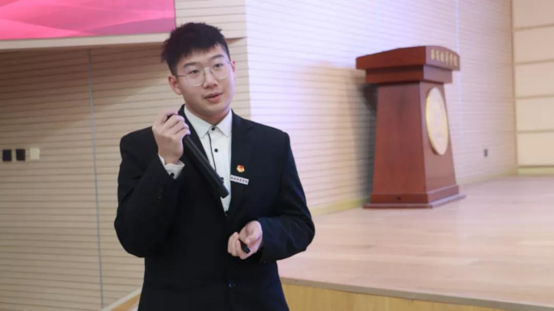 娄镇宇同学以“团课知识普及”为主题,先讲解了三会两制一课的重要内容。然后从团课的含义,开展团课的原因以及开展时需注意的事项,讲团课的具体步骤这几方面进行了具体讲解。最后希望各位团支书可以讲好团课,不忘初心,砥砺前行,做团员青年的领路人。