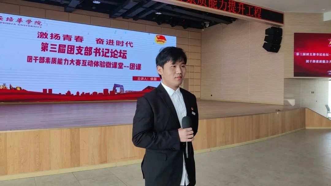 为进一步落实“大抓基层”的鲜明导向,加强基层组织建设,提升共青团的组织力,明确团支部书记职责定位,增强团支部书记责任意识,提高综合技能,更好地开展团支部活动,共青团西安培华学院委员会云梯青年学校,于2023年3月19日16点 在恒友楼报告厅召“青春践行二十大,踔厉奋发勇担当”第三届团支部书记论坛暨团干部素质能力大赛互动体验微课堂。本次论坛邀请“青马工程”青年讲师团成员,人文与国际教育学院团委书记朱林鹏、建筑与艺术设计学院团委书记李煜、云梯青年宣讲团成员侯磊担任分享人。