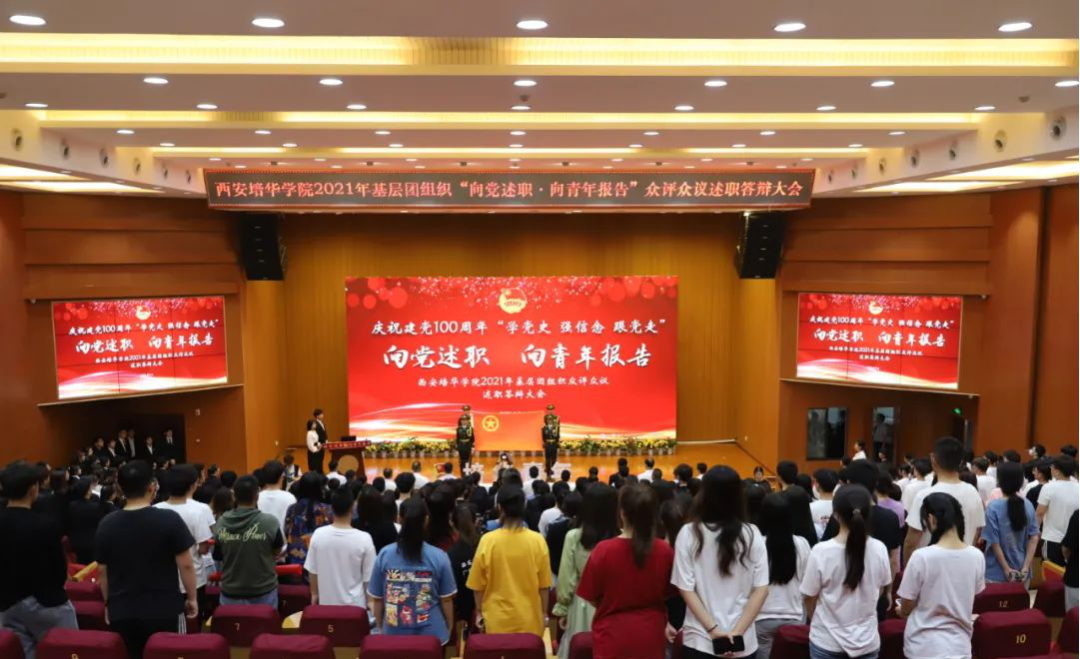 为更好落实团中央关于“全面大抓基层”的重要导向,加强和规范基层团组织建设,构建全面立体科学评价机制,调动和发挥青年积极性,增强基层团组织的引领力、组织力、服务力,强化大局贡献度,提升培华青年的凝聚力和向心力,西安培华学院2020—2021学年基层团组织“向党述职,向青年报告”众评众议述职答辩大会于5月12日在维之图书馆报告厅隆重召开。