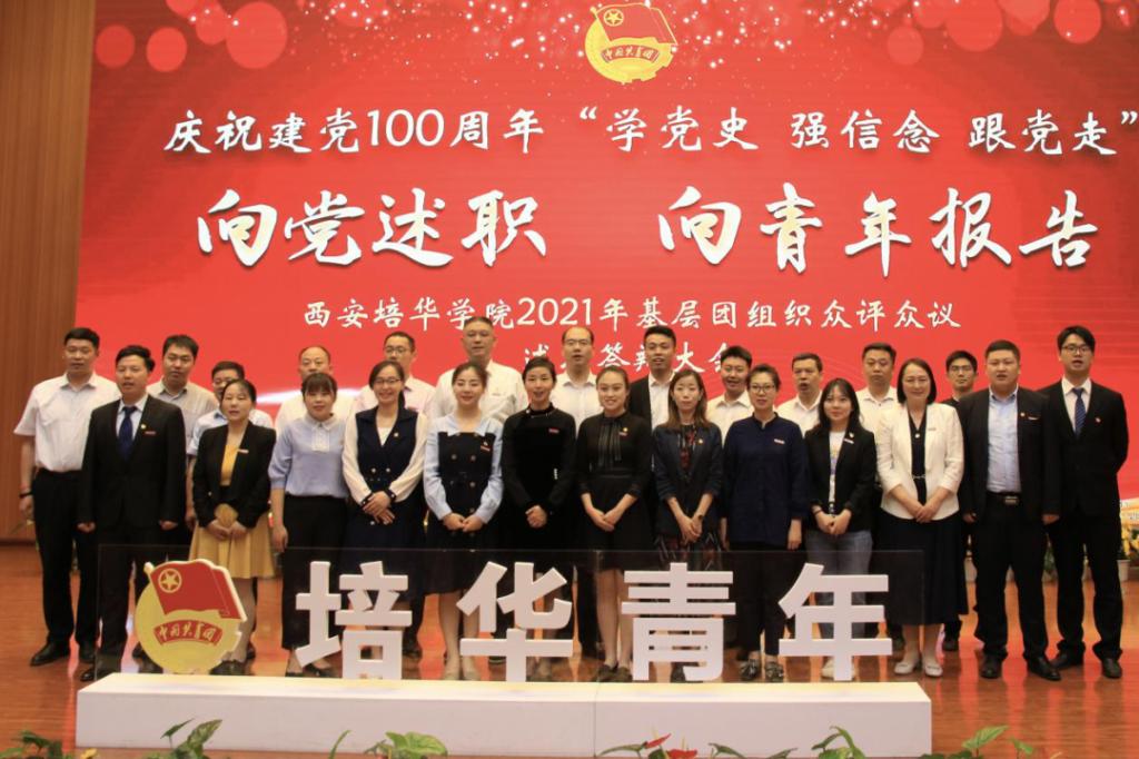 西安培华学院围绕庆祝中国共产党建党一百周年开展了一系列强有力充满活力的党史学习教育活动,坚定方向,提升思想价值引领,各学院取得优异成绩。在建党100周年之际始终坚持以党建带团建,在学党史强信念跟党走主题教育中,回顾历史总结经验、增强前进的勇气和力量。共青团始终担负党赋予的光荣职责 ,团学带领广大团员青年 ,为新时代党和国家事业,学校建设,学院发展 ,做出更大的贡献。会继续将立德树人作为根本任务,发挥党和团委的核心领导作用, 大力支持共青团工作 。同时倡议党委书记对共青团工作给予更多的关心 ,关注,让团委书记们工作不孤单 ,干事有底气 ,出错有后台 。通过领悟学习活动组织,社会服务等途径,不断创新青年学生的思想灵敏度和工作方式,培养励志前行,全面发展,脚踏实地,志存高远的青年学生,在学校的本科平台中实现自身价值,在国家复兴中,勇担时代责任;在民族富强中 ,展现蓬勃力量。