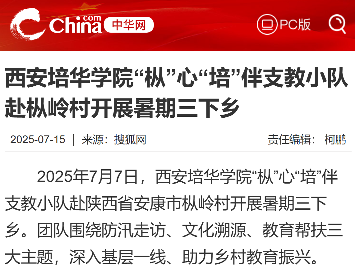 2025年7月7日,西安培华学院“枞”心“培”伴支教小队赴陕西省安康市枞岭村开展暑期三下乡。团队围绕防汛走访、文化溯源、教育帮扶三大主题,深入基层一线、助力乡村教育振兴。