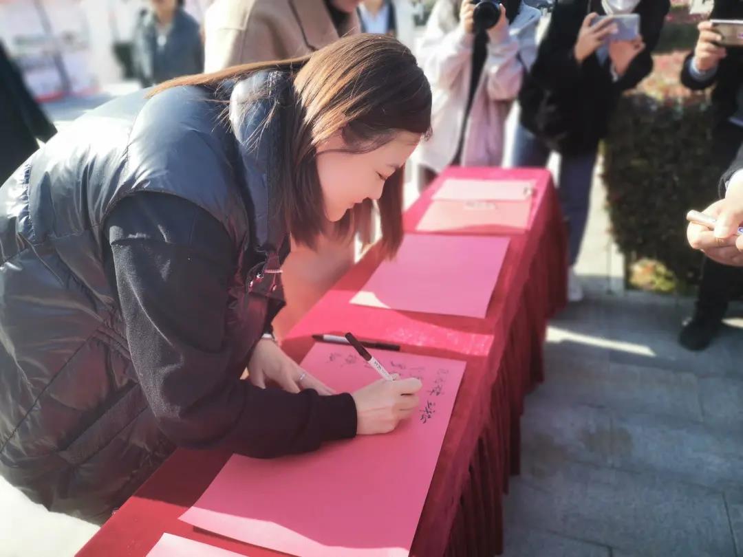 ▲副校长、党委副书记姚文静副教授参观成果展并题字